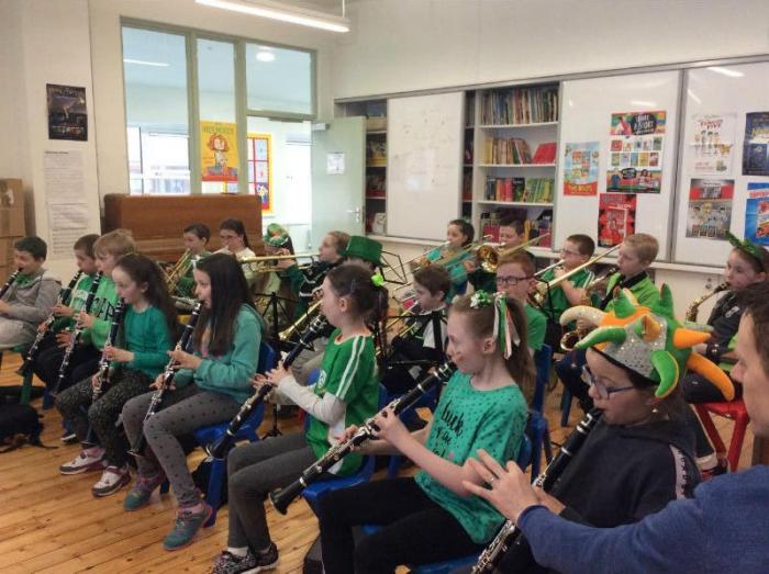 Pictured are P5 children playing in the band on Green Day!
