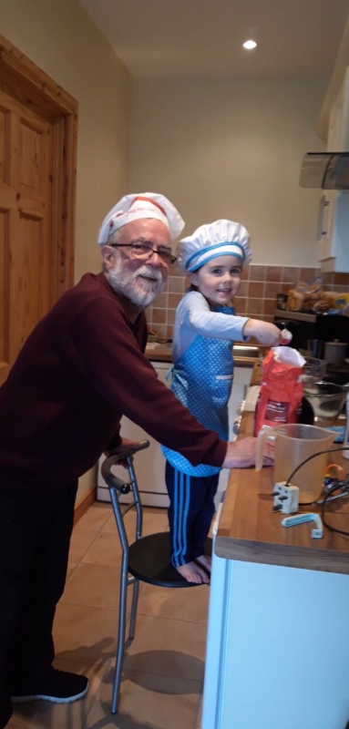 Caoimhe has been doing her work, colouring in and baking with her granda!