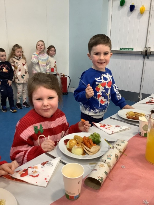 On Friday, we all came together to enjoy our Christmas dinner. We would like to say a massive thank you to Mrs Linnie, Mrs McNamee for all their hard work and for creating the wonderful feast. The Christmas dinner was just delicious and the children enjoyed every bite.