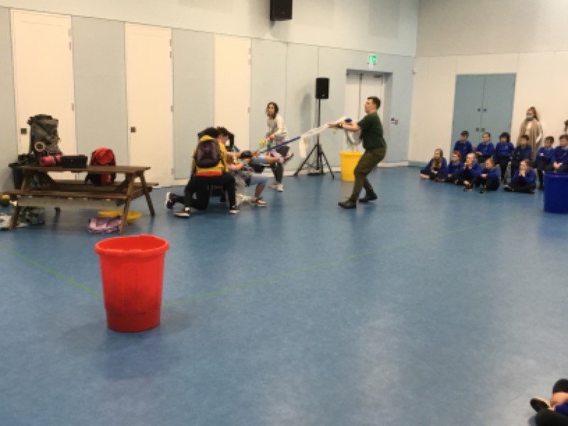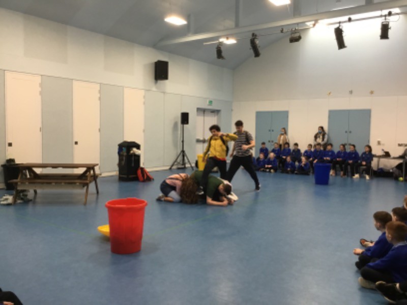 P4/5/6/7 were treated to a wonderful display of acting from the Lyric Theatre in Belfast this week. Five extremely professional actors performed a play entitled ‘A Walk is not just a walk.’ The play highlighted the challenges we are facing today with climate change, plastic pollution and many other global problems.