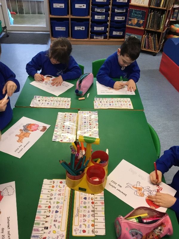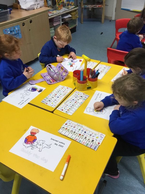 Mrs McKay's class played safe games on the computer and iPads, they listened to the story of Buddy the Dog and Digiduck and the magic castle teaching them all about staying safe online. The children coloured posters on internet safety.