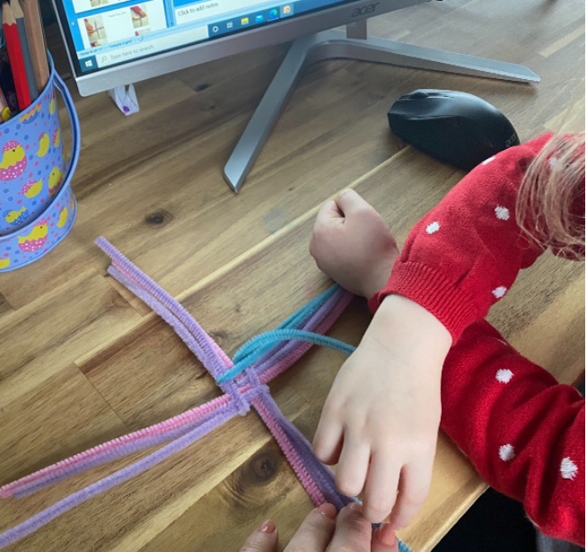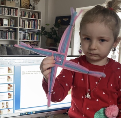 Misia made a creative St. Brigid’s cross. I love the colours you used Misia, good girl! đŸ˜€